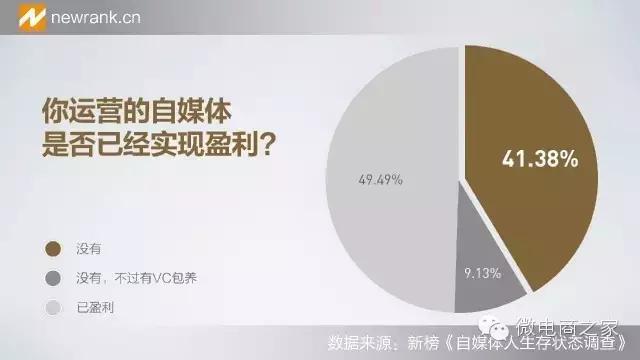 雖然只有不到50%的自媒體開始盈利賺錢了,但是,你會發現,這些盈利賺錢的自媒體,都已經變成一種符號,一種代表。比如邏輯思維,一條,顧爺等,他們已經不僅僅是自媒體了,他們已經形成了一個生態圈,這個生態圈里,都有完整的生態鏈,包括后面的團隊,都已經相對比較成熟穩定,能夠不停的產出有價值的內容。能夠到這個地步,賺錢的自然的。
