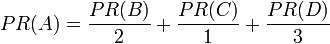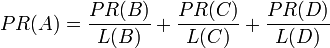 如果網頁T存在一個指向網頁A的連接,則表明T的所有者認為A比較重要,從而把T的一部分重要性得分賦予A。這個重要性得分值為:PR(T)/L(T)