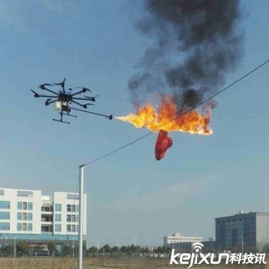 據報道,一些電力公司開始用無人機噴火來清理高壓線上的垃圾比如垃圾袋、風箏,除了能降低危險性外,還能減少員工的精力耗費,提高工作效率。