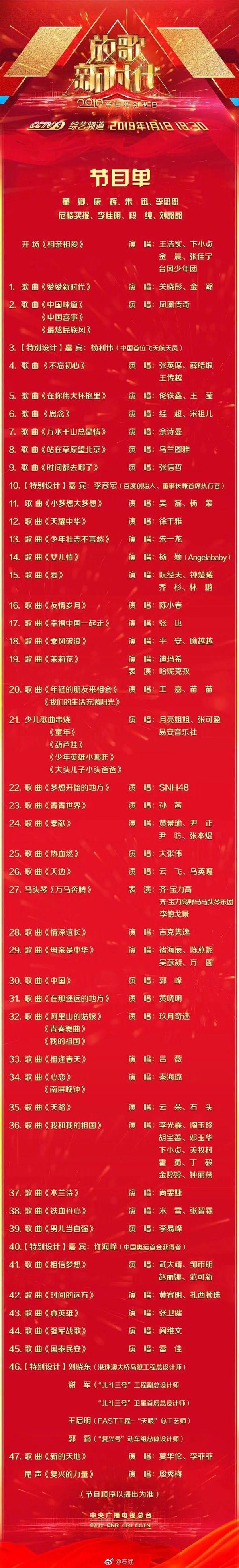 2019年央視元旦晚會節目單公布 百度創始人參加“特別設計”