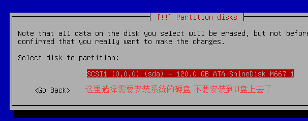 這里選擇需要安裝系統(tǒng)的硬盤,不要安裝到U盤上了,一定要看準(zhǔn)磁盤大小
