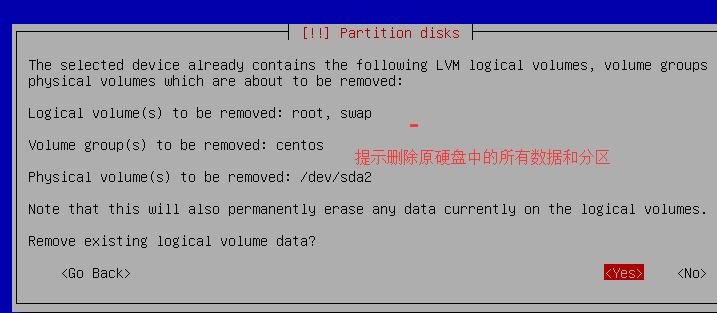 提示刪除原硬盤中的所有數(shù)據(jù)與分區(qū)