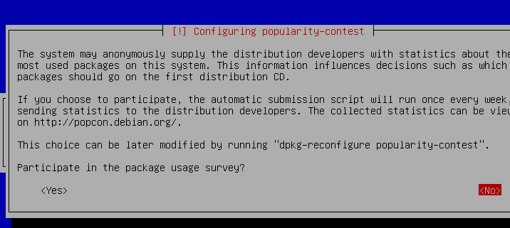 選擇 NO 統(tǒng)計(jì)軟件包流行度的。會(huì)定期上報(bào)本機(jī)安裝了哪些軟件包。