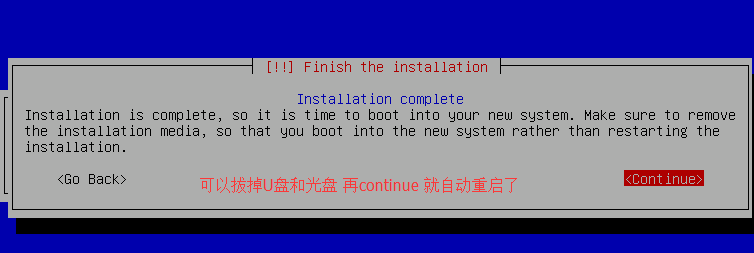 可以拔掉U盤與 光盤 再continue 就自動(dòng)重啟了