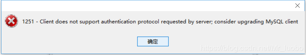 二:使用Navicat連接MySQL時報錯:Client does not support authentication protocol requested by server;consider upgrading MySQL client