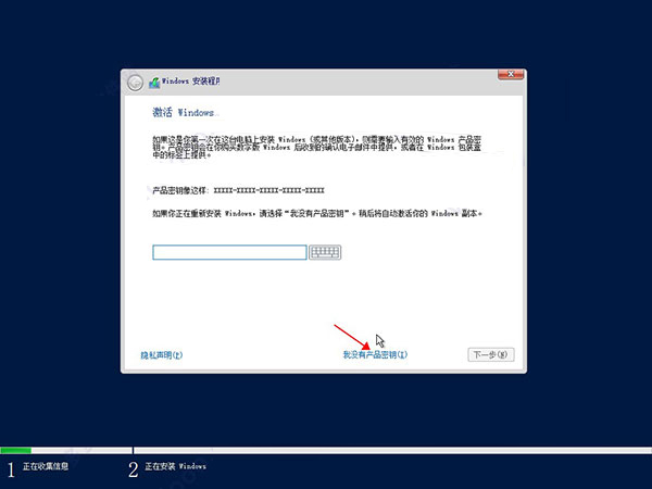 5、秘鑰可以先選擇“沒有產(chǎn)品秘鑰”選項,如下圖所示:
