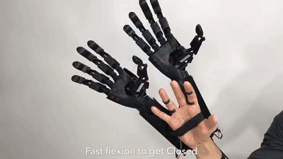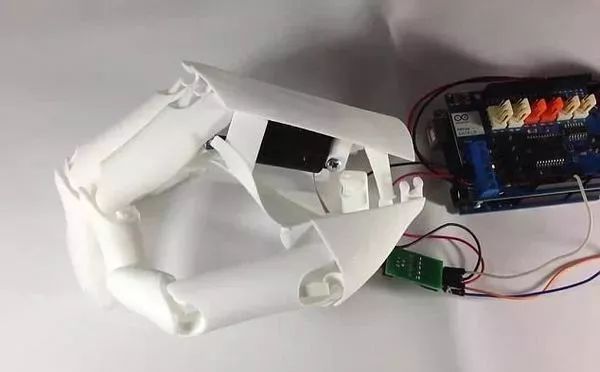 至于原理呢,機械手配備了一個Arduino微處理器、一組運動傳感器和三個電極。