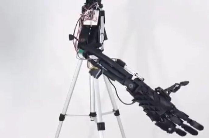 所以說借助手指上的傳感器,用戶就可以用這個手臂自如地緊握或抓捏物體。