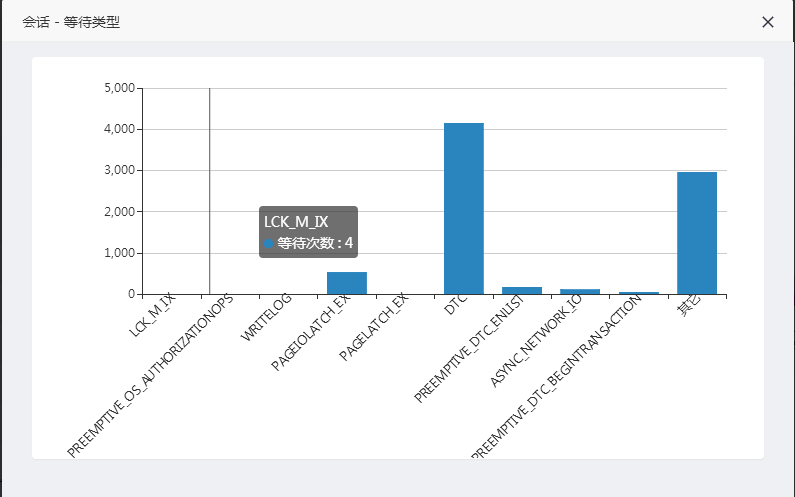 會話-等待類型:橫坐標為等待類型,縱坐標為等待數量。