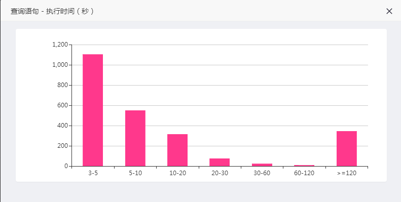 語句執行時間:橫坐標為時間范圍,縱坐標為在執行時間在范圍內分布的語句數量。