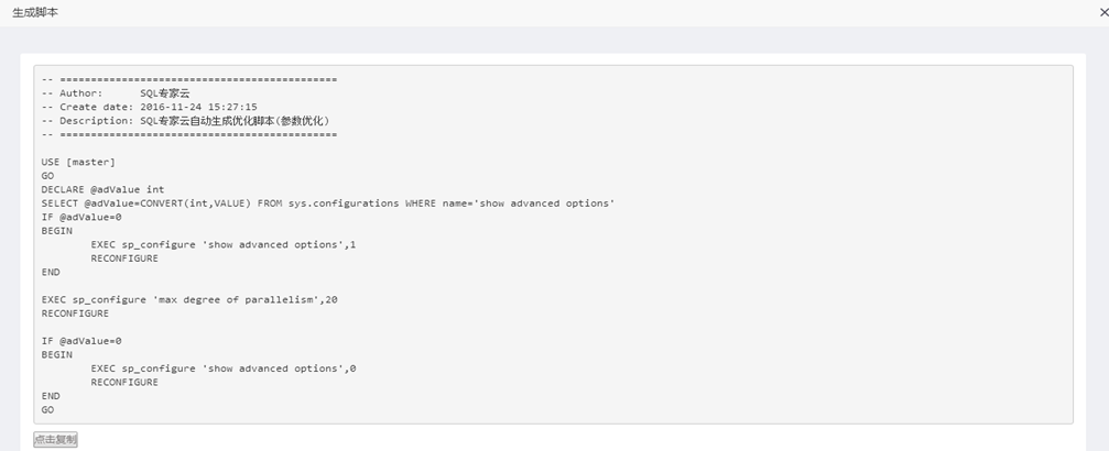 彈出優化配置腳本—如需修改復制文本—在服務器運行即可修改