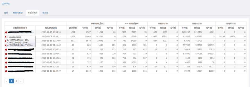通過工具語句的【執行計劃】中找到對應的隱式轉換處,分析程序傳入和數據庫表設計綜合解決。