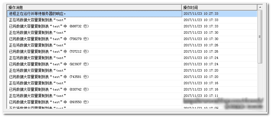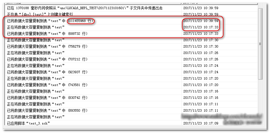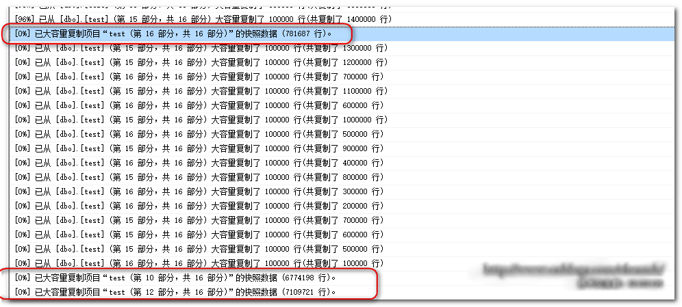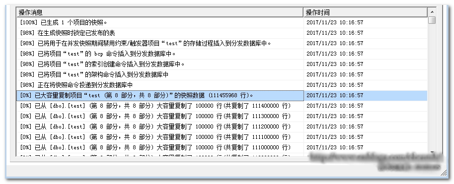 從2008R2分發(fā)記錄過程中可以看到每次BULK都是以bcp文件為單位,復制最后一個bcp文件花費了大概22分鐘,而前面的每個文件都是十幾秒;還是由于我當前的表只有三個字段而且除了主鍵沒有索引否則的時間就更長了。