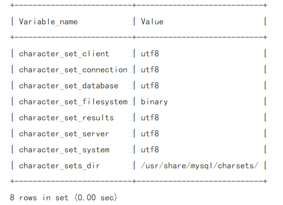 設(shè)置完成后,再次執(zhí)行命令:show variables like 'character%';