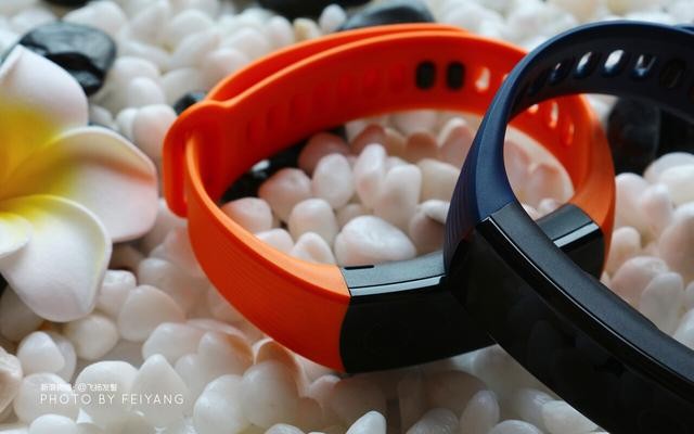 榮耀手環3有碳晶黑、蔚海藍、活力橙三款的配色,本人上手體驗的是其中色彩很亮的活力橙和蔚海藍,兩款顏色都很亮眼,加上僅約18g的重量,佩戴上不僅輕便,而且還非常的具有運動活力感。