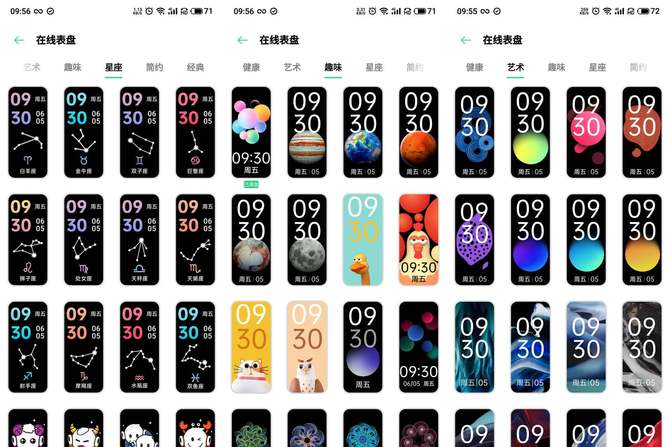 整體看外觀色設計還是比較時尚且潮流的,并且OPPO手環還提供了非常豐富的表盤樣式供用戶自行選擇,讓用戶時刻對手環保持新鮮感。