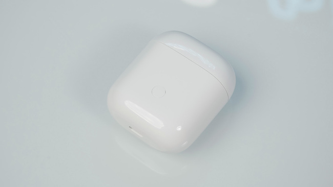 充電盒為立式上開蓋設計,轉軸阻尼較小,不開到最大的情況下,頂蓋很容易因為磁力的原因自己扣上,正面有一顆圓形實體按鈕以及一顆隱藏在盒體下方的指示燈,充電口沒能用上Type-C,依舊是micro-USB接口。