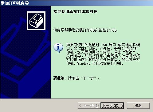 2.在彈出的打印機安裝向導窗口中,用鼠標單擊“下一步”按鈕,如下圖所示。
