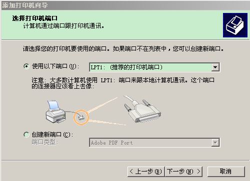 4.明確打印機使用的端口,針式打印機一般采用lpt1端口。用鼠標單擊“下一步”按鈕,如下圖所示。