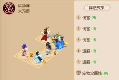 獅駝嶺擅長物理群傷,且具備不錯的控制能力,不過其還是更偏向于輸出職業,所以獅駝嶺在陣法選擇上依舊推薦速度和傷害屬性。