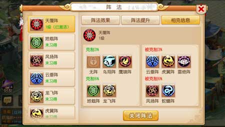陣法推薦:天覆陣、虎翼陣、鳥翔陣、風揚陣