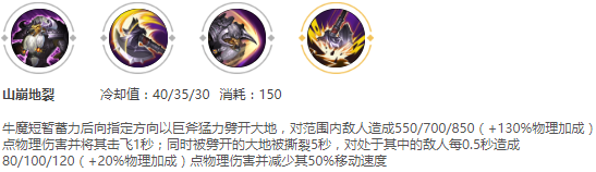 2。命中牛魔一技能的敵人會物理攻擊和法術攻擊都會減少百分之15,時間持續3秒鐘的時間。