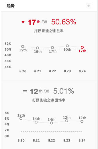 隨著版本的不斷變化,凱隱在打野位上的登場率以及勝率都在下滑,現在他在韓服凱隱的登場率為5.01%,勝率為50.63%,以這個數據來看的話,他在所有打野英雄中的水平應該已經是中等偏下了。