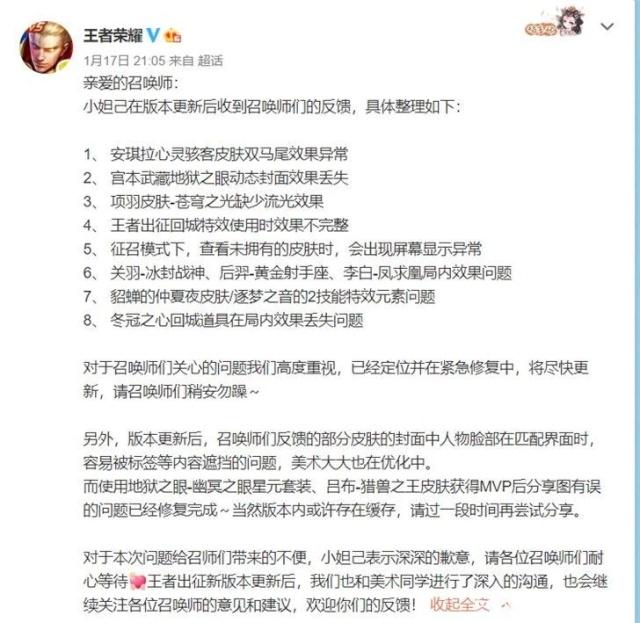 本次更新在帶來大量的全新體驗、畫質提升的同時,也帶來了諸多問題。不少玩家都表示遇到了各種各樣的Bug,昨日晚間,王者榮耀官方也是注意到了這一問題,并對玩家遇到的問題進行匯總,表示已經定位Bug并在緊急修復中,將盡快更新。