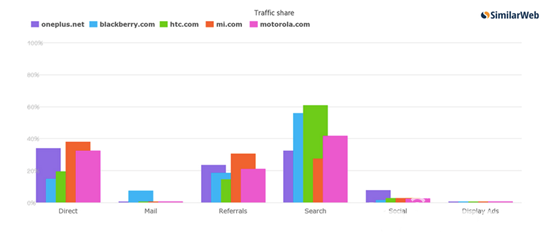 一加及其競品的官網流量來源對比數據圖