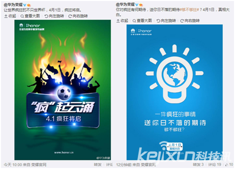 3月25日上午和下午,華為榮耀官方微博陸續追發兩張有關“瘋狂”的海報,讓“一件瘋狂的事情”顯得更加撲朔迷離。