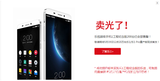 生態(tài)手機(jī)風(fēng)暴來襲 200臺樂視超級手機(jī)工程機(jī)秒罄