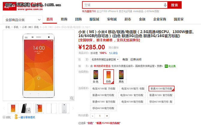 小米將于明日發布小米4c用來填補小米5發布前的這段斷檔期,回顧一下小米4目前的行情來說,該機已經跌到了歷史冰點,3GB大內存聯通3G網絡版本僅售1285元,非常超值。如果你需要4G網,那同樣是3GB大內存的移動4G版則報價1518元,相比小米官網1799元的價格優惠了二百余元。隨著wifi在國內的普及,以及對于3G信號更好的聯通用戶來說,4G網絡也變的不那么重要了。因此聯通3G版仍是目前小米4性價比最高的版本。
