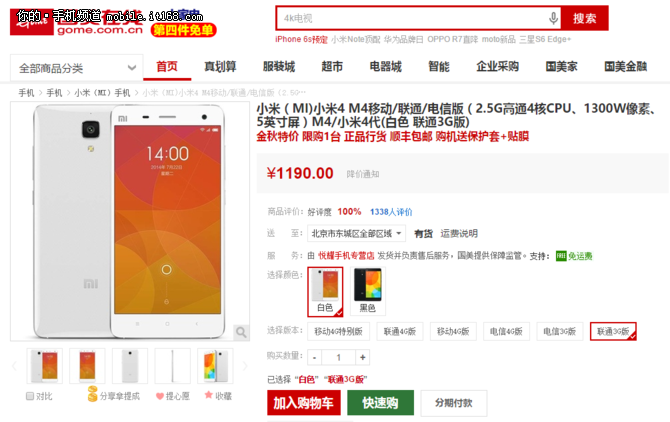 比小米4c更優(yōu)惠 小米4清倉價(jià)1190元