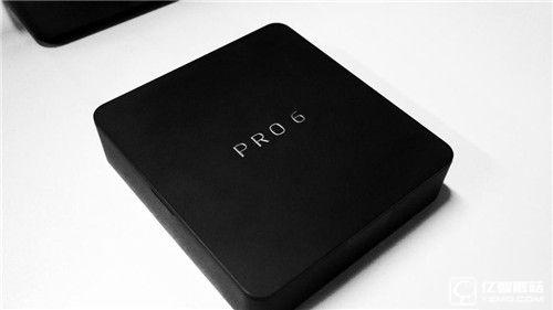 首先是Pro6的包裝,正面十分簡潔,采用非常穩重的黑色設計,磨砂的手感,乍一看有一點金屬質感,但是應該只是一種硬塑料,整體視覺效果比較好,符合高端機型的“待遇”,正面只有一個PRO6標志,由于拿到機器時已經被機器提供方開箱檢驗,所以可能與實際有點差別。
