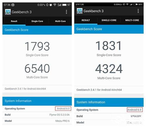 在Geekbench跑分中,小米5標準版搭載的降頻版高通驍龍820處理器單核性能略高于Pro6搭載的聯發科曦力X25,而在多核性能表現中,X25則發揮了核心數量的優勢,超越820兩千多分。