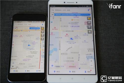 同樣的高德地圖,小米Max能顯示的區(qū)域比旁邊的iPhone6s多出不少。把小米Max當(dāng)做車載導(dǎo)航儀使用,是個(gè)很好的選擇。同時(shí),MIUI中內(nèi)置的“巨無霸”字體,能夠使得小米Max的顯示內(nèi)容,看上去更大,適合老人使用點(diǎn)按。