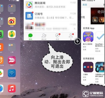 5、如果你的微信是在App Store中用自己的Apple ID賬號下載的,也遇到了閃退的話,應該是系統與軟件之間出現了問題,此時我們可以打開iPhone6手機的后臺管理,把微信從后臺退出去。