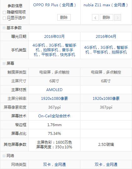 nubia Z11 Max與OPPO R9 plus配置參數(shù)全面對(duì)比: