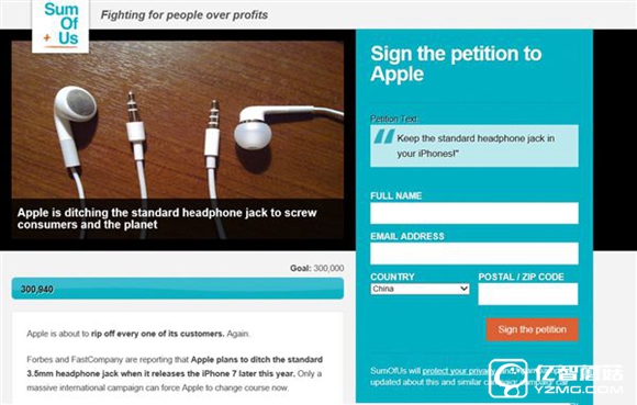 從今年1月份開始,就不斷有果粉在知名公益網站SumOfUs.org發起請愿書投票(請愿地址,你也可以投一票),反對蘋果保留3.5mm耳機接口。目前,請愿人數已經超過30萬人,達成當初的目標。