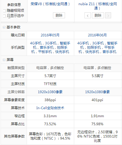 努比亞 Z11和榮耀V8配置參數(shù)詳細(xì)對(duì)比: