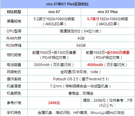 一加手機3和vivo X7配置參數區別對比評測