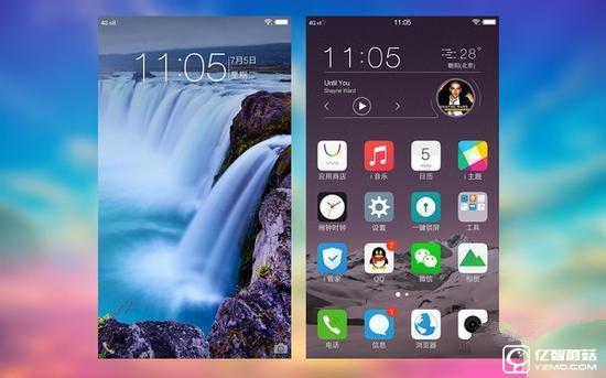 vivo X7延續了其扁平化設計理念,圖標設計新穎,讓人耳目一新。鎖屏界面則融合了自然風光、特色建筑、美食等精美圖片,與時鐘等相輔相成,給人一種善心悅目之感。