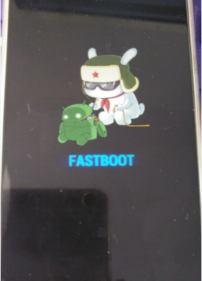 1:手機先進入FastBoot模式:進入方法為:手機在關機的狀態下,按住手機的音量下鍵 + 電源鍵不要松,持續數秒即可進入,當屏幕中出現一只米兔正在修安卓機器人則已經進入FastBoot模式。
