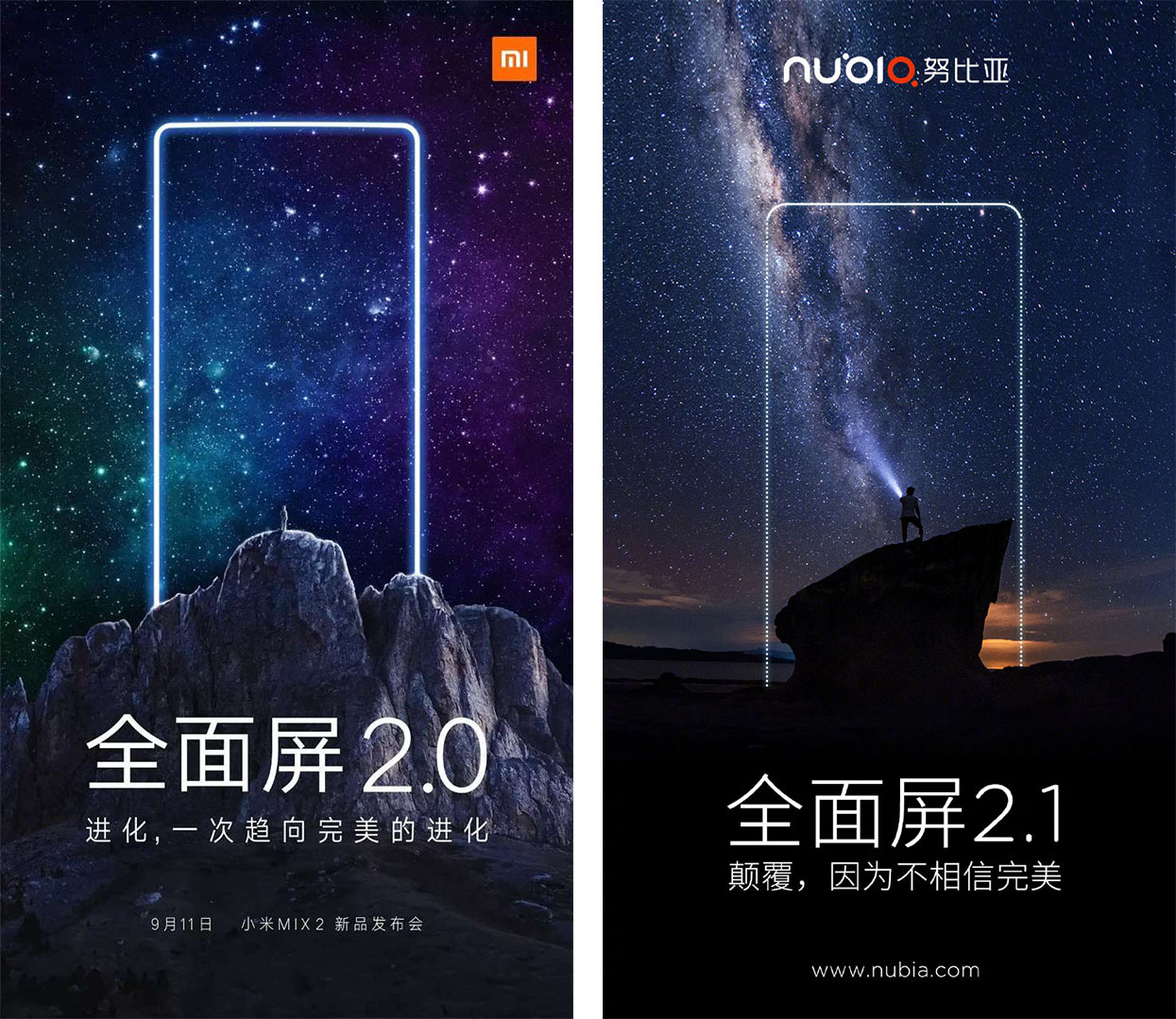 不過就海報而言,努比亞手機一直都有碰瓷小米的嫌疑。首先,“全面屏X.0”的宣傳手法是出自小米之手(小米MIX自稱全面屏1.0);其后,小米MIX2自稱全面屏2.0,但隨后推出的努比亞Z17s卻自稱全面屏2.1,為此很難不會讓人聯(lián)想到努比亞是在營銷上碰瓷小米。