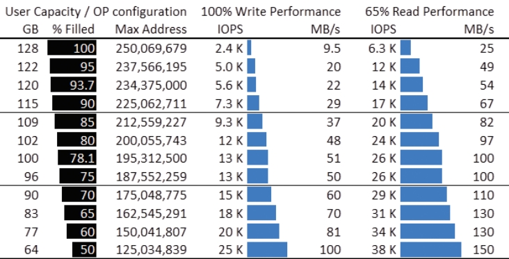 看上去QLC閃存得到的容量相比損失的壽命而言似乎是得不償失。但是SSD的使用壽命除了閃存顆粒的可擦寫次數(shù)之外,還有很重要的一點(diǎn),就是SSD自身的容量。