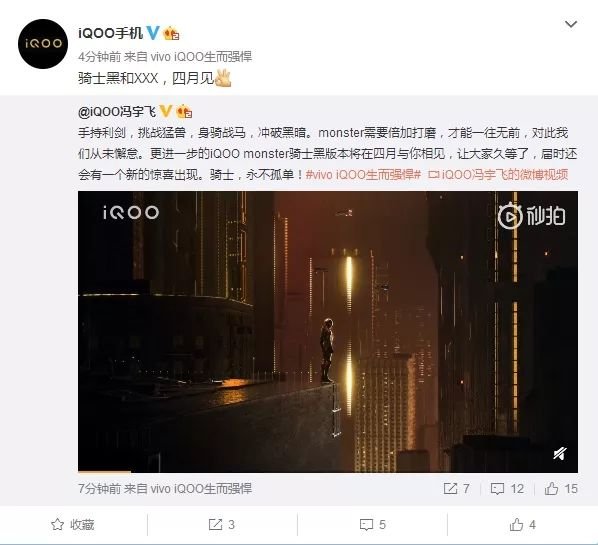 3月29日消息,iQOO品牌副總裁馮宇飛宣布,iQOO monster騎士黑版本將于四月正式亮相,屆時還會有一個新的驚喜出現,值得期待。