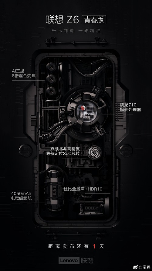 聯想Z6青春版明日發布:搭載高通驍龍710處理器+后置三攝