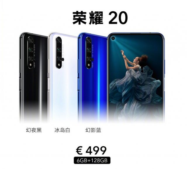 榮耀20系列發(fā)布:搭載麒麟980處理器+挖孔屏+側(cè)邊指紋,售價(jià)499歐元