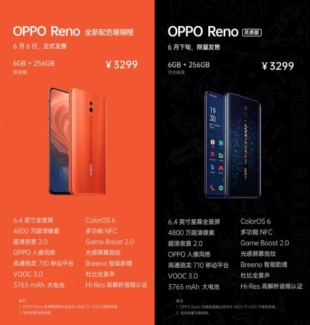 此外,OPPO 此次還基于 Reno 標準版推出新配色,分別是珊瑚橙和靈感版,僅提供 6+256GB 一種存儲規格,售價相比標準版沒有變化,均為 3299 元。