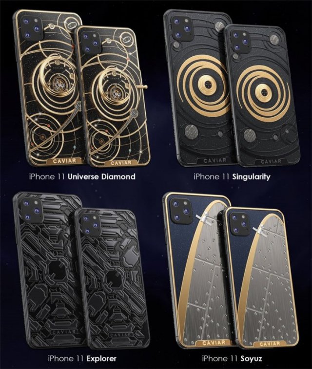 Caviar是俄羅斯的一家珠寶公司,非常擅長推出各種奢華定制款的數碼產品,其代表作應該是鉆石和貴金屬鑲嵌的iPhone。目前,該公司也為即將上市的iPhone 11設計了5個太空定制版本,這些特別定制版本將于iPhone 11正式發售后推出,每個型號會制作99份。
